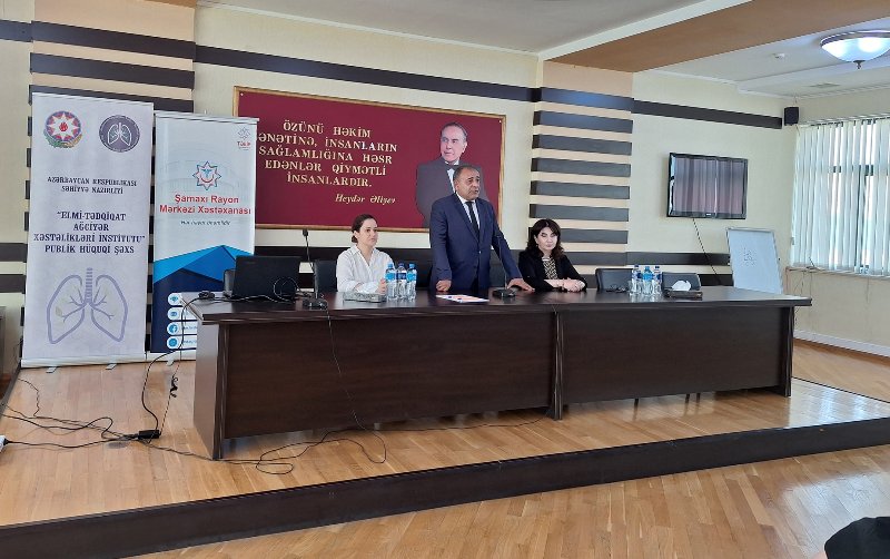 Azərbaycan Respublikası Səhiyyə Nazirliyinin Elmi-Tədqiqat Ağciyər Xəstəlikləri İnstitutu tərəfindən Şamaxı Rayon Mərkəzi Xəstəxanasında "Vərəmin aşkarlanması, diaqnostikası, müalicəsi və profilaktikasına müasir yanaşmalar" mövzusunda regional praktik təlim keçirilib.