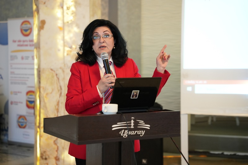 "Uşaqlarda kəskin tənəffüs çatışmazlığına yanaşma" mövzusunda çıxışında uzman pediatr Nazlı Şirinova xəstəliyin ağırlıq dərəcəsinin təyini, erkən müdaxilə və həyat qurtarıcı ilkin tibbi yardım metodlarını təqdim edib.