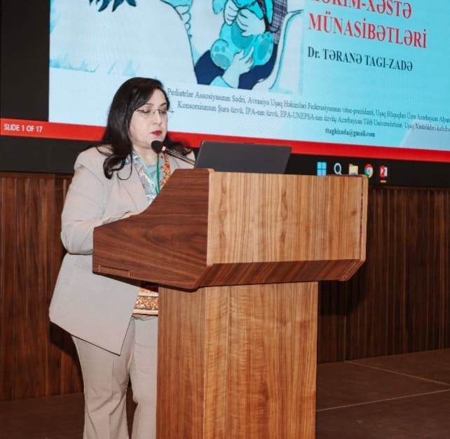 Tədbirin əsas məruzəçilərindən biri Azərbaycan Pediatrlar Assosiasiyasının sədri, Avrasiya Uşaq Həkimləri Federasiyasının vitse-prezidenti, Azərbaycan Tibb Universitetinin dosenti, tibb üzrə fəlsəfə doktoru Təranə Tağı-zadə neyroinkişaf pozuntularına kompleks və koordinasiyalı yanaşmanın tətbiqinə dair təqdimatla çıxış edib. O, neyroinkişaf pozuntuları olan uşaqlarla bağlı tibbi, sosial və bioetik çağırışlara dair geniş təqdimatda müasir tibbi yanaşmalarla yanaşı, ailə və cəmiyyət dəstəyinin əhəmiyyətini xüsusi vurğulayıb.